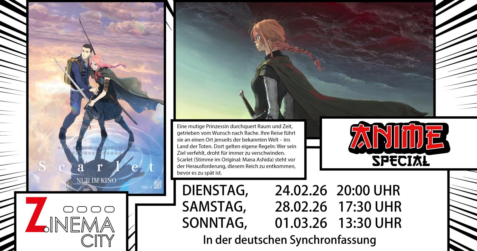 Der visionäre, für den Oscar® nominierte Filmemacher Mamoru Hosoda ("MIRAI - Das Mädchen aus der Zukunft") präsentiert ein kraftvolles, zeitübergreifendes Animationsabenteuer über SCARLET, eine mittelalterliche Prinzessin, die mit dem Schwert kämpft und sich auf eine gefährliche Mission begibt, um den Tod ihres Vaters zu rächen.